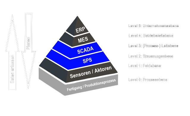 - Prozessleitbene: SCADA-Systeme, Maschinen- und Betriebsdatenerfassung, Auftrags- und Rezeptverwaltung